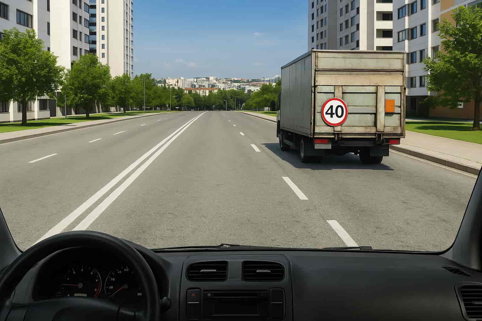 Транспортные средства, скорость движения которых не должна превышать 40 км/ч или которые по техническим причинам не могут развивать такую скорость, должны двигаться по крайней правой полосе, кроме случаев объезда, обгона или перестроения перед поворотом налево или разворотом.
