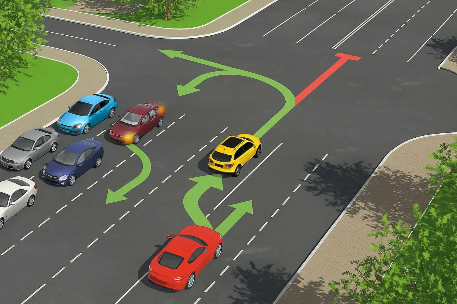 - При отсутствии разметки полосы определяются водителем — с учётом ширины и безопасности.