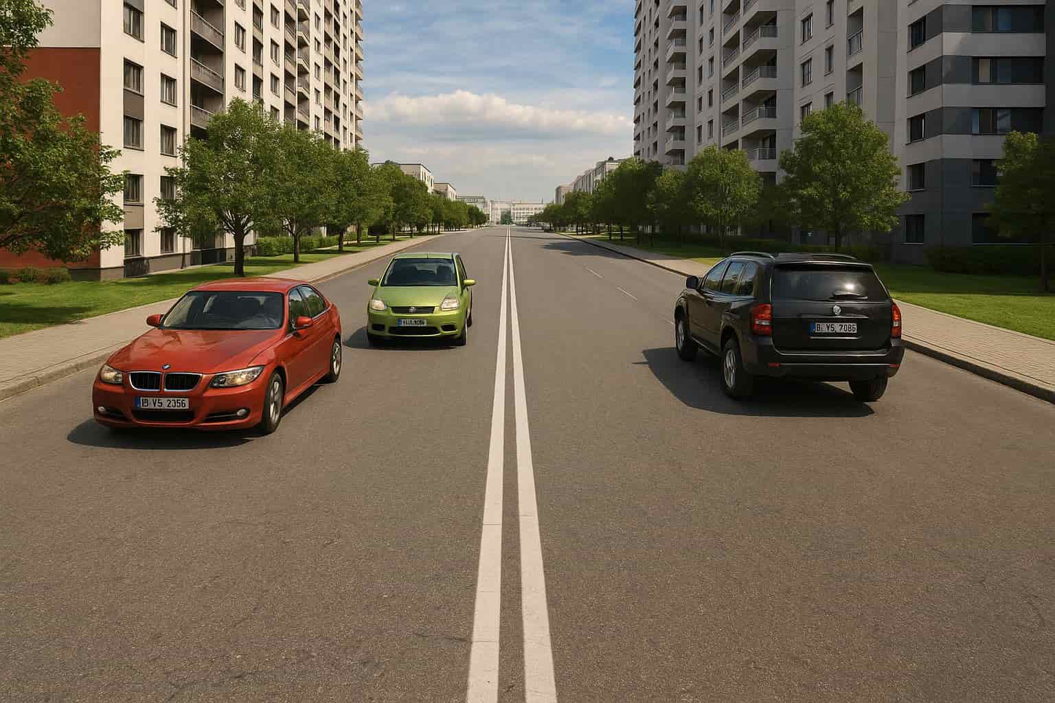 Когда на дороге нет разметки, водитель определяет количество полос сам, но обязан сохранять безопасные интервалы и двигаться предсказуемо для других участников движения.