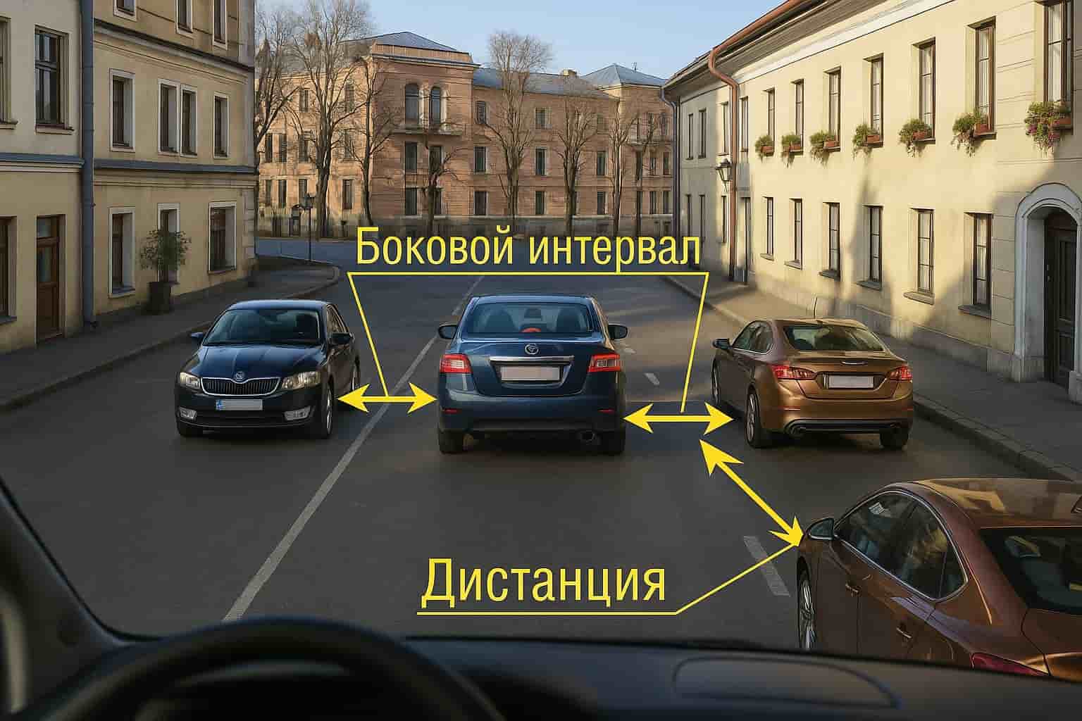 В обоих случаях увеличение бокового интервала обеспечивает запас безопасности и снижает риск ДТП.