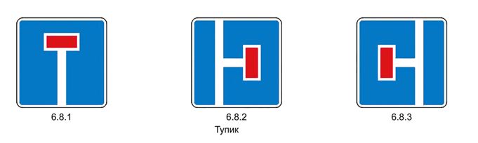 Знаки 6.8.1–6.8.3 «Тупик». Дорога, не имеющая сквозного проезда.