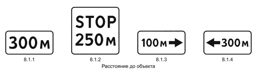Таблички 8.1.3 и 8.1.4 «Расстояние до объекта». Указывают расстояние до объекта, находящегося в стороне от дороги.