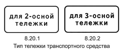 Таблички 8.20.1 и 8.20.2 «Тип тележки транспортного средства». Применяются со знаком 3.12. Указывают число сближенных осей транспортного средства, для каждой из которых указанная на знаке масса является предельно допустимой.