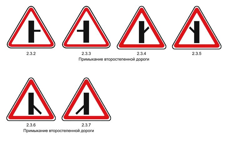 Знаки 2.3.2–2.3.7 «Примыкание второстепенной дороги». Примыкание второстепенной дороги.